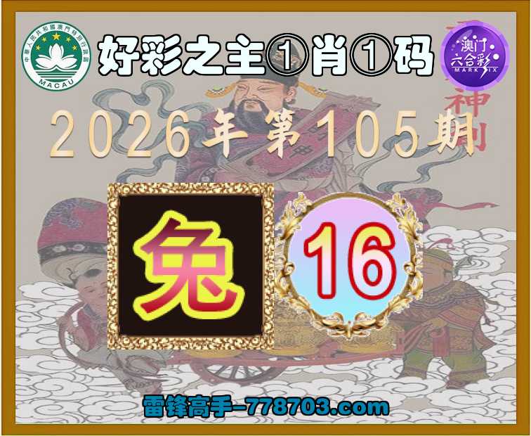 105期:『好彩之主』 ①肖①码【兔】【16】开:00准