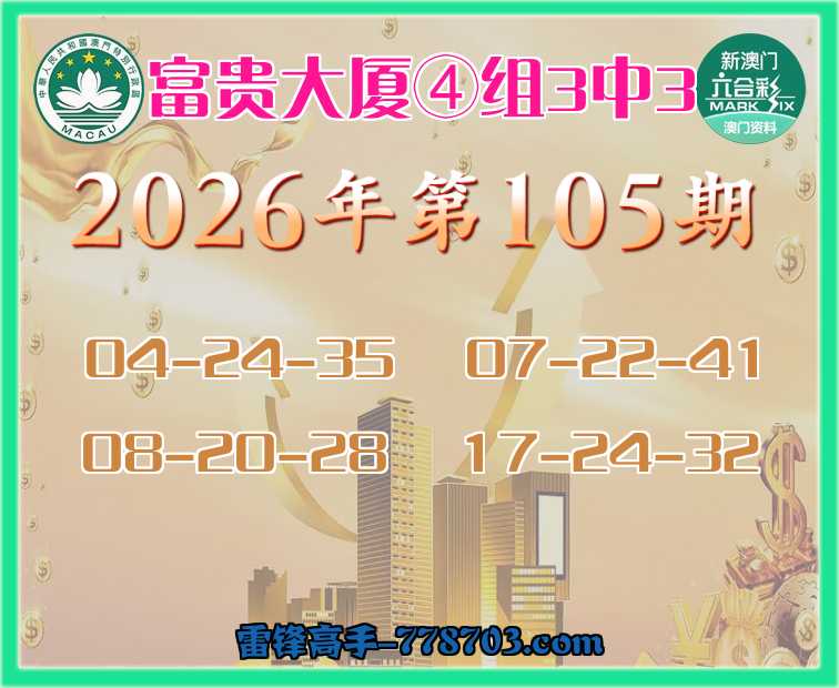 主题: 105期:澳门雷锋【富贵大厦】【④组3中3】彩民赢彩必看✔