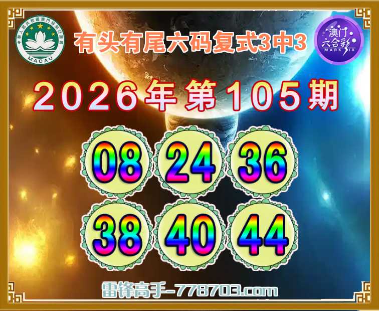 主题: 105期:澳门雷锋【有头有尾】【六码复式3中3】彩民赢彩必看✔